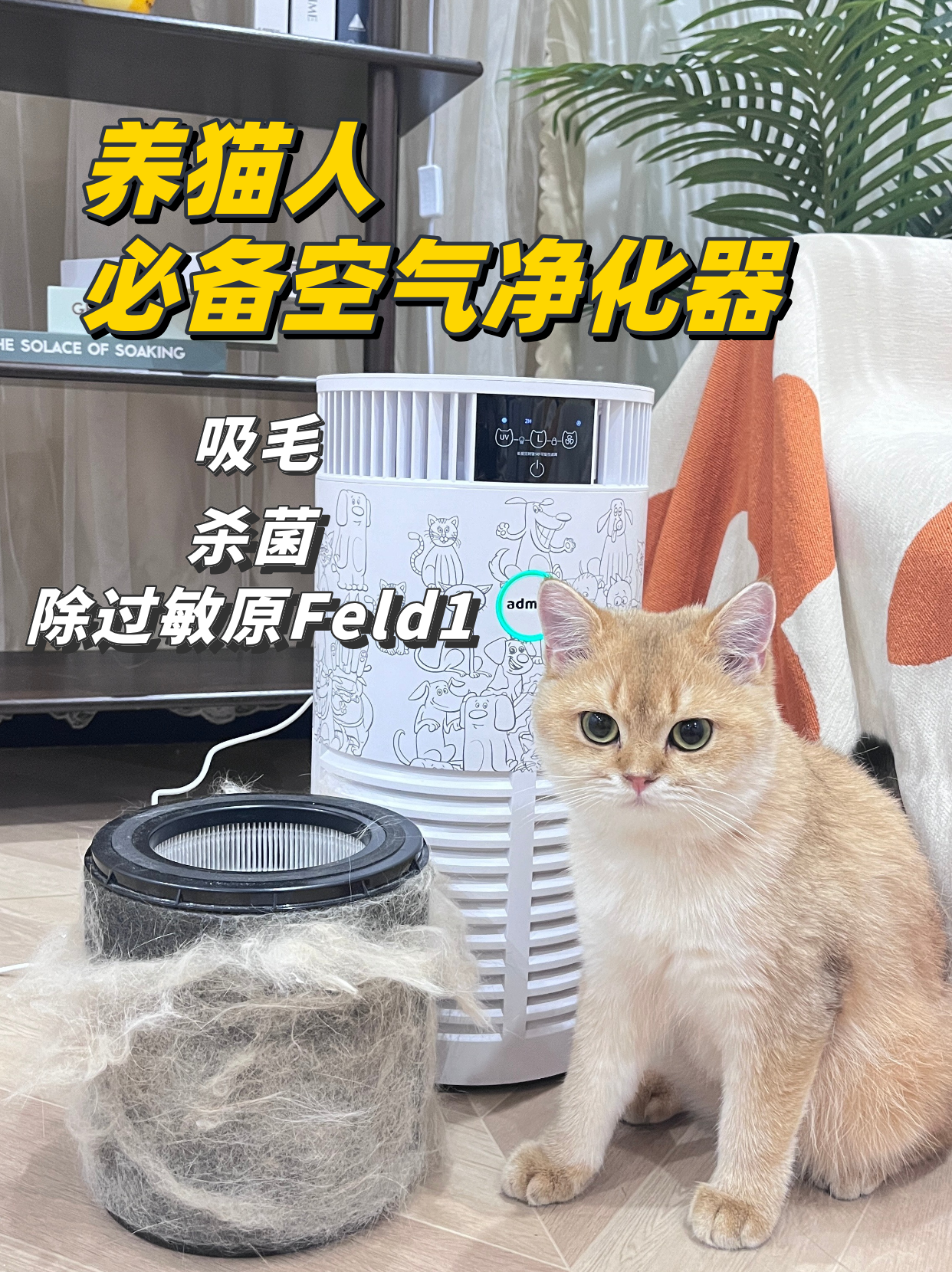 貓貓好搭子—安德邁空氣凈化器輕松吸毛,過敏原去除率高達98%