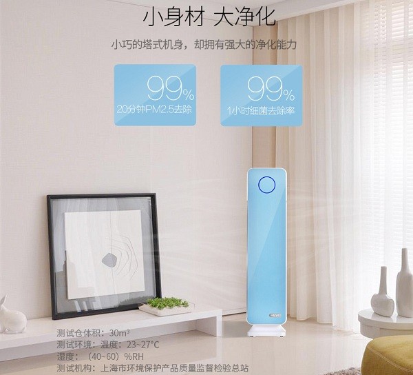 漂亮得不像實力派,admair安德邁AH-9005空氣凈化器外觀為修身塔式設計,清新藍和氣質白兩種外殼可滿足不同用戶的家居風格搭配。它占地面積小于一張A4紙張,體積小讓您輕松將它擺放在任何位置。它的CADR值≥170m3/h,滿足17-30平米房間使用,客廳、臥室、書房均可。遠遠望去,宛如藝術品,美好生活方式就是這么簡單。